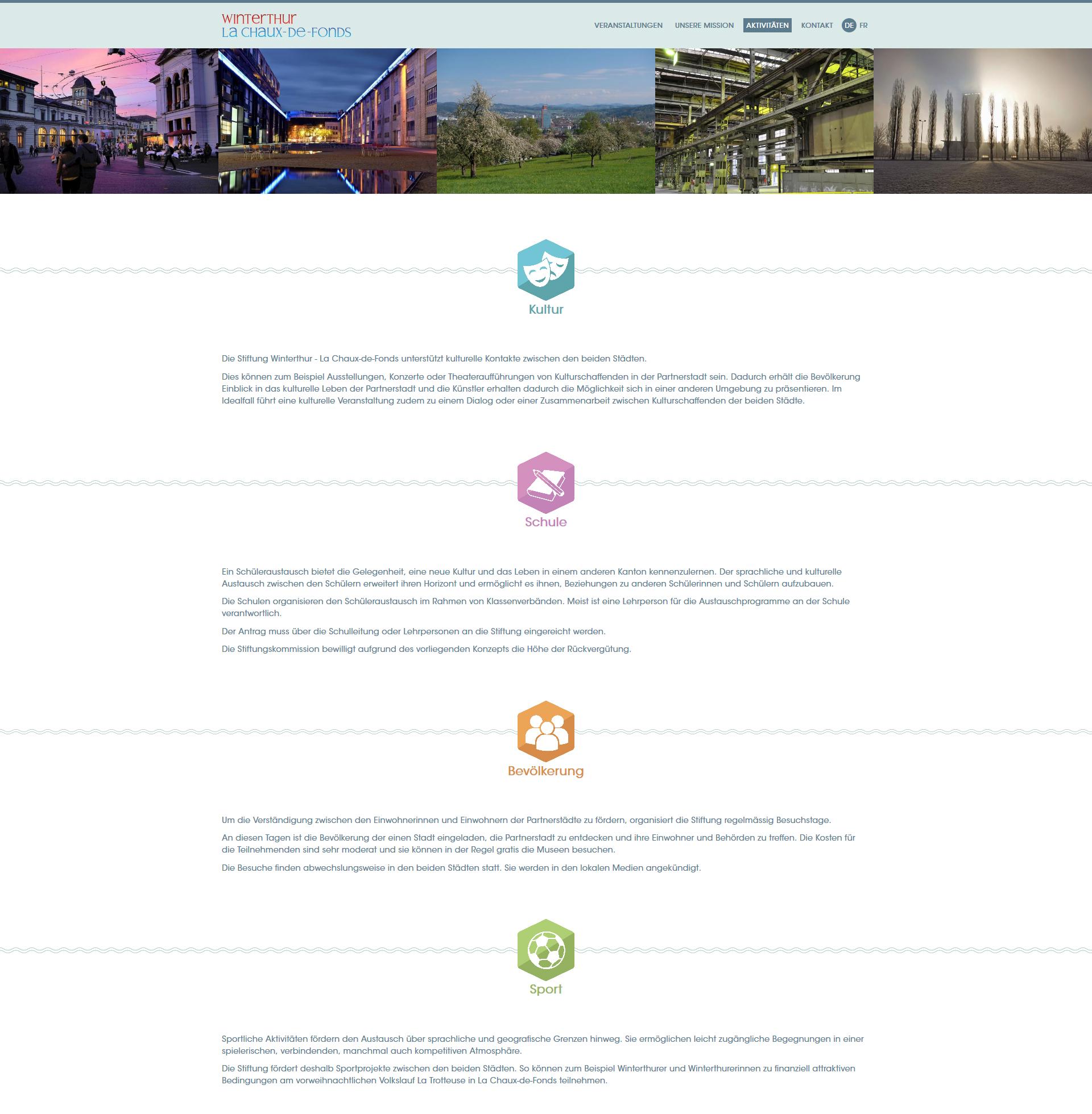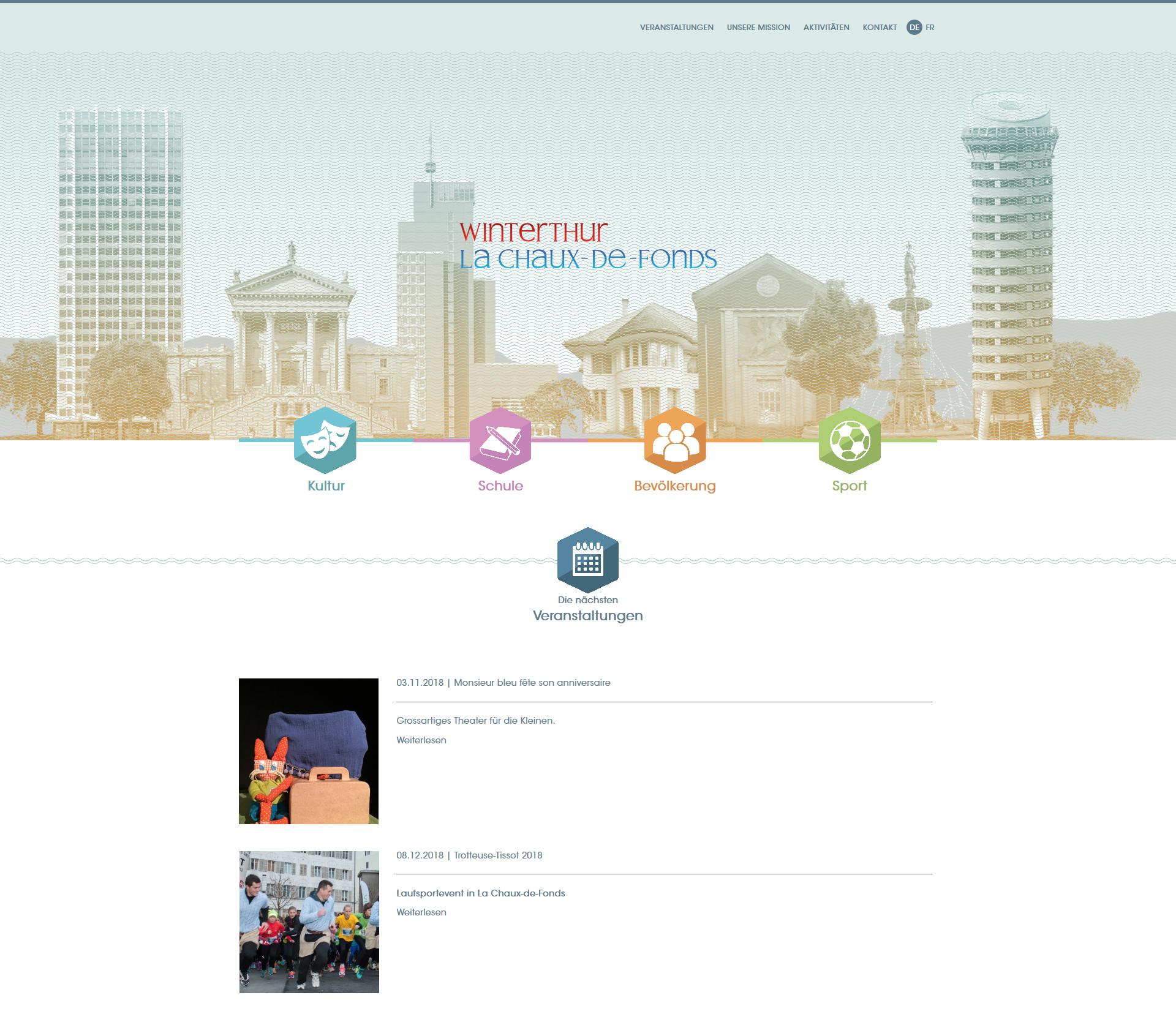 Die Website wurde so gestaltet dass der Header auf kreative Art die beiden Schwesternstädte verbindend darstellt.